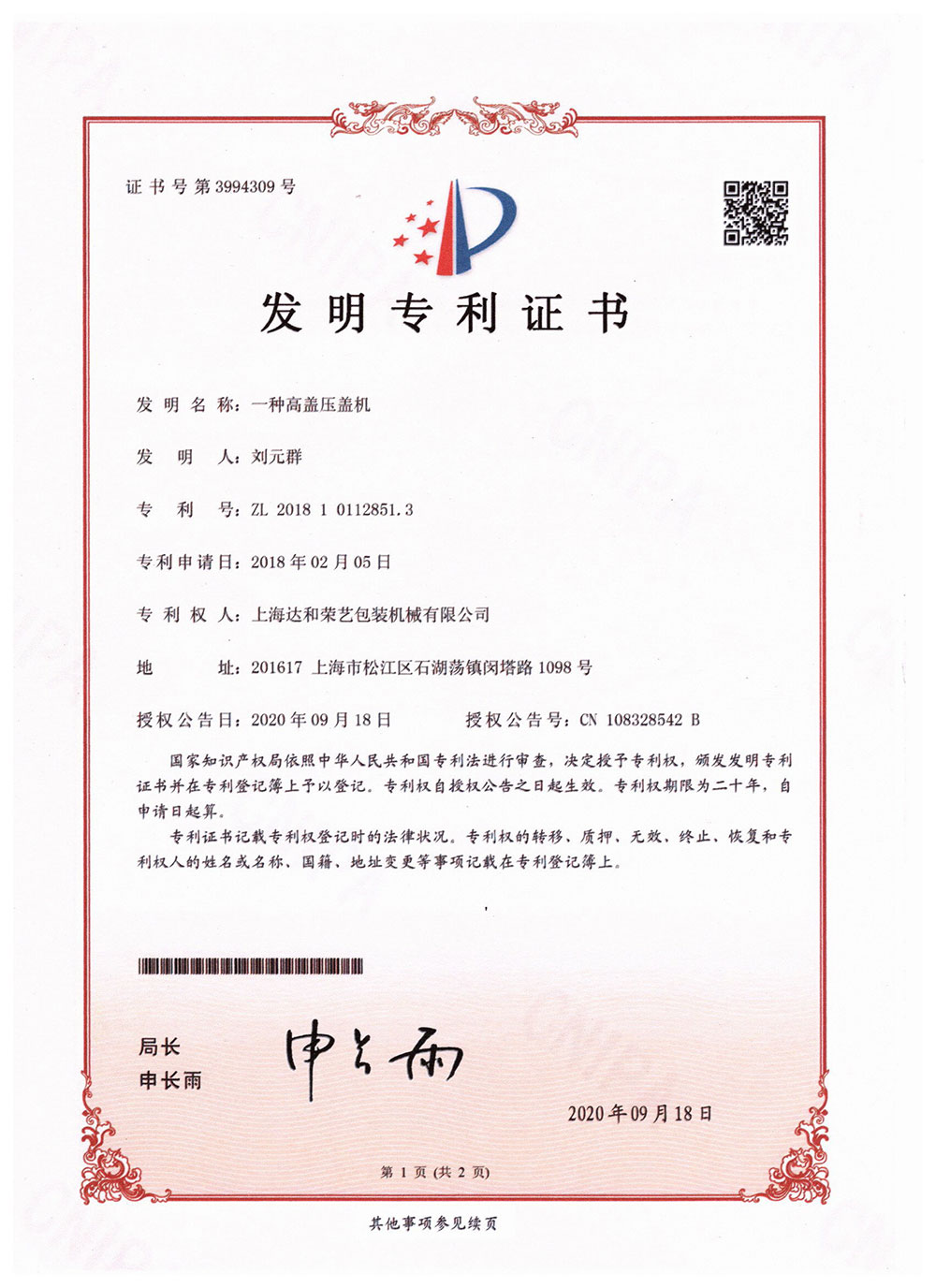 專利證書